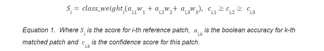 While we are here, I have another doubt as well. The formula says “ai,k is the boolean accuracy for k-th patch”. I interpret ‘boolean accuracy’ here to mean that each image in the query set will be considered to have exactly one correct match in the image corpus (e.g. Image 1 in the query set will only correspond to Image D in the image corpus, and any other suggestion will get a score of 0). Is this interpretation correct?