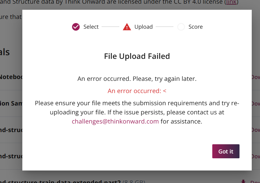 Thanks for reaching out about the file upload issue. We have corrected it on our side so you should not have any issues with submitting. Please reach out to us if you encounter any troubles with your uploads.